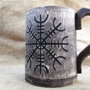 Надпись на круже «Sons of Odin» и «Valhalla» а на обратной стороне символ «Агисхьяльм».